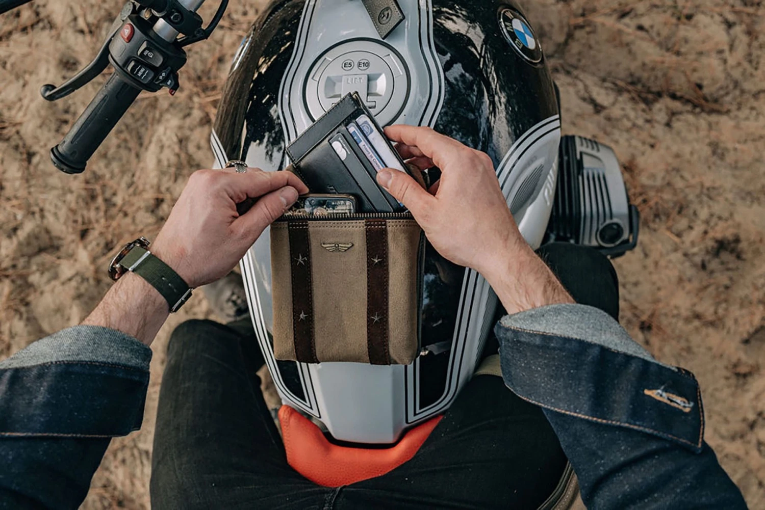 In de magnetische militaire tas kunt u uw benodigde accessoires voor roadtrips en dagelijks gebruik opbergen. Bestaat uit zes neodymiummagneten verborgen op de achterkant voor eenvoudige en snelle bevestiging aan de motortank. Een riempje zorgt ervoor dat je hem om de taille kunt dragen. De Artonvel Military magnetische tas is gemaakt van hoogwaardige, duurzame en waterdichte materialen voor dagelijks gebruik en onder alle omstandigheden, met de volgende kenmerken: Volnerf generfd kalfsleer en suède Sterk synthetisch nylon: waterdicht, lichtgewicht, hoge slijtvastheid Binnenstof waterdicht van buitenaf Accessoires op maat ontworpen door het Franse bedrijf Dorlet 6 neodymium magneten Riemdoorgang Ritssluiting met YKK-schuifregelaar Afmetingen zak: breedte 150 mm – hoogte 185 mm – dikte 40 mm