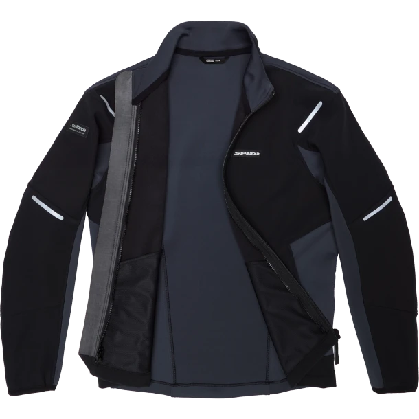 SPIDI Mission Soft Shell is a multi-functional thermal layer, compatible to all SPIDI items featuring Step-In Armor technology. Riders can use it as a stand alone casual jacket or as part of a protective motorcycle jacket being wearable over protective layers such as for example SPIDI Tech Armor. Connection is through zip and loops. The shell is designed combining Windout panels and elastic areas, with the double function of reducing wind chill effect and leave maximum comfort when worn over a protective layer.